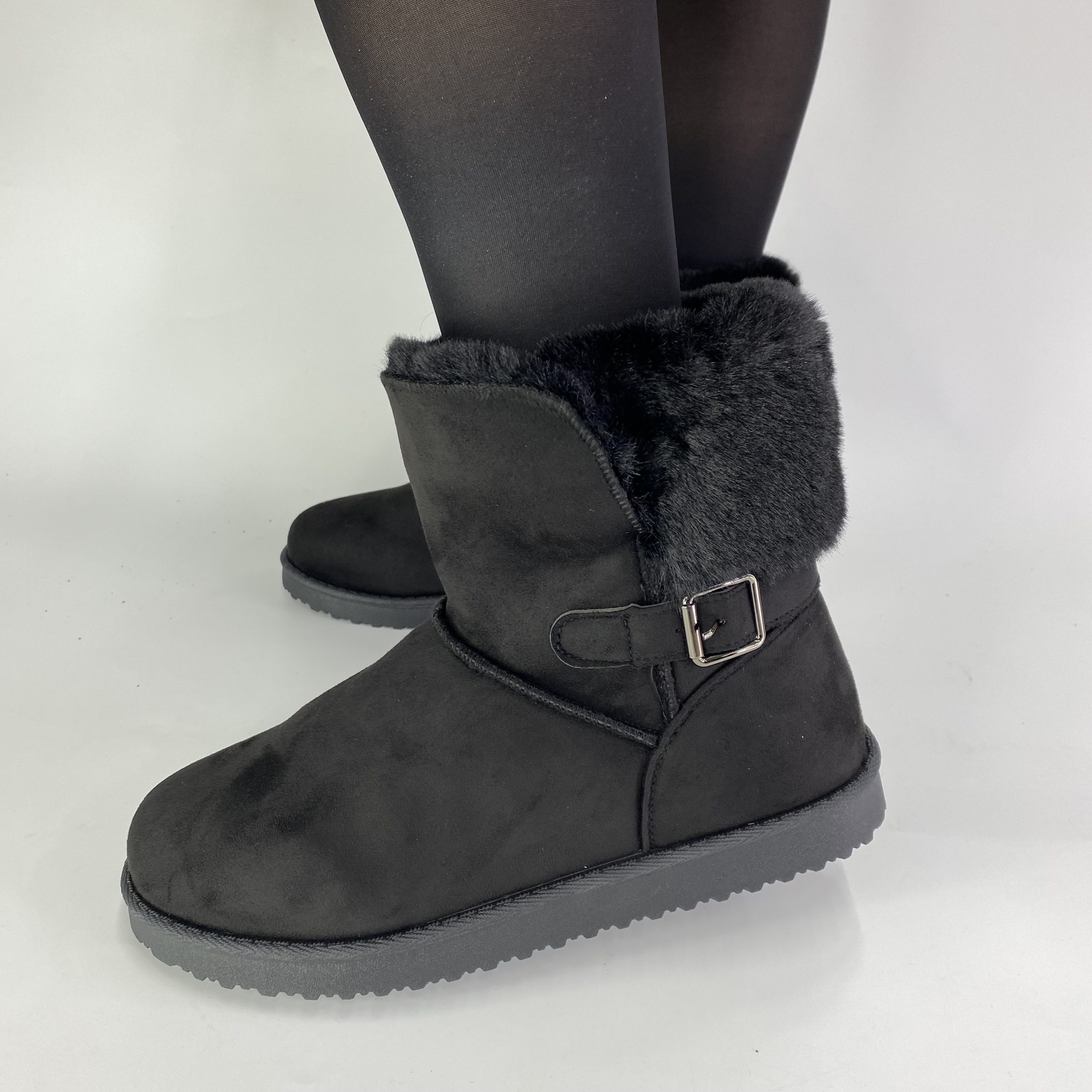 JD-5 Μπότες τύπου UGG με γούνα σε μαύρα.