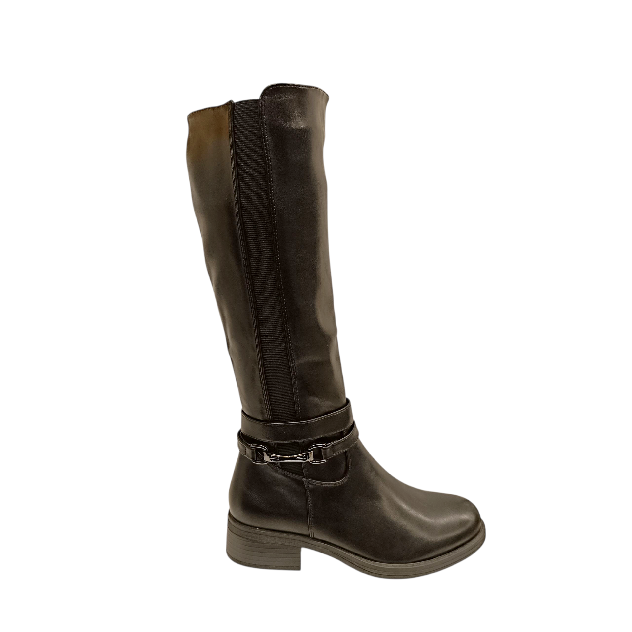 B033 Μπότες με Λάστιχο & Διακοσμητικό Λουράκι σε μαύρο χρώμα