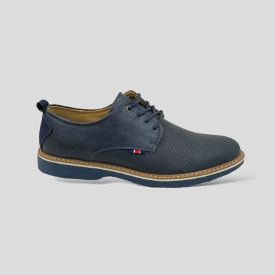 Ανδρίκο παπούτσι ανάγλυφο με κορδόνι σε μπλέ χρώμα