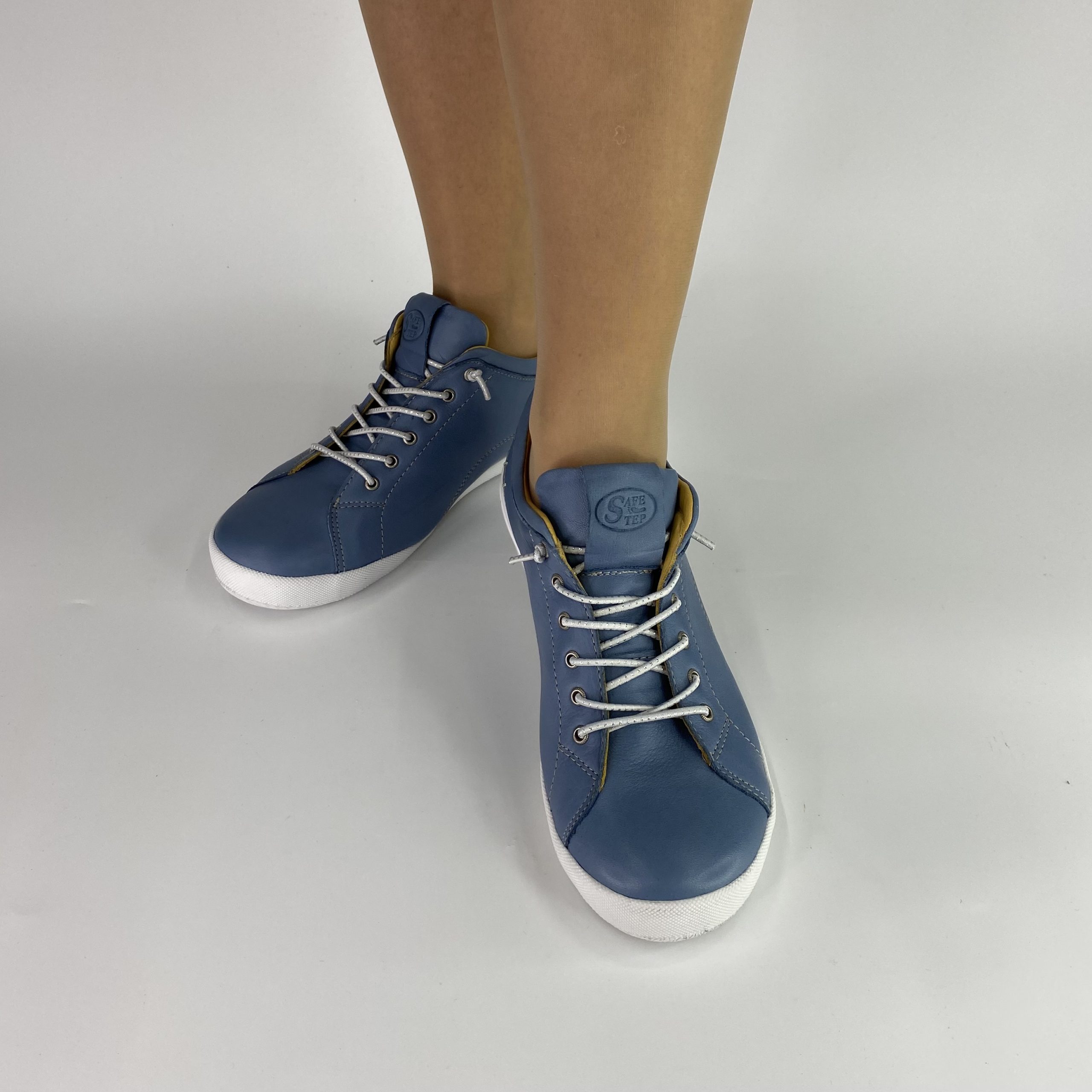SAFE STEP Γυναικεία παπούτσια – τύπου sneakers. Δερμάτινα, αερόσολα και ανατομικά. Διαθέτουν λάστιχα αντί για κορδόνια, για ευκολία στο φόρεμα και καλή προσαρμογή. Το μαλακό τους δέρμα, η μαλακή αντιολισθητική τους σόλα και ο ιδιαίτερος δερμάτινος πάτος τους, εγγυώνται άνετο και ξεκούραστο βάδισμα όλη μέρα. Για εσάς που θέλετε άνεση και εμφάνιση. Μια κατασκευή για περπάτημα και ορθοστασία.