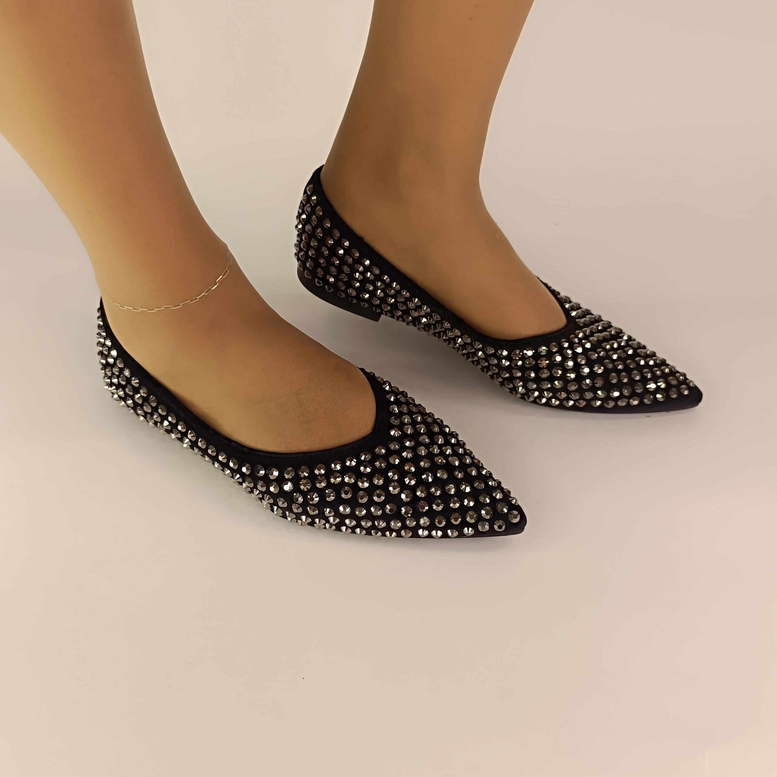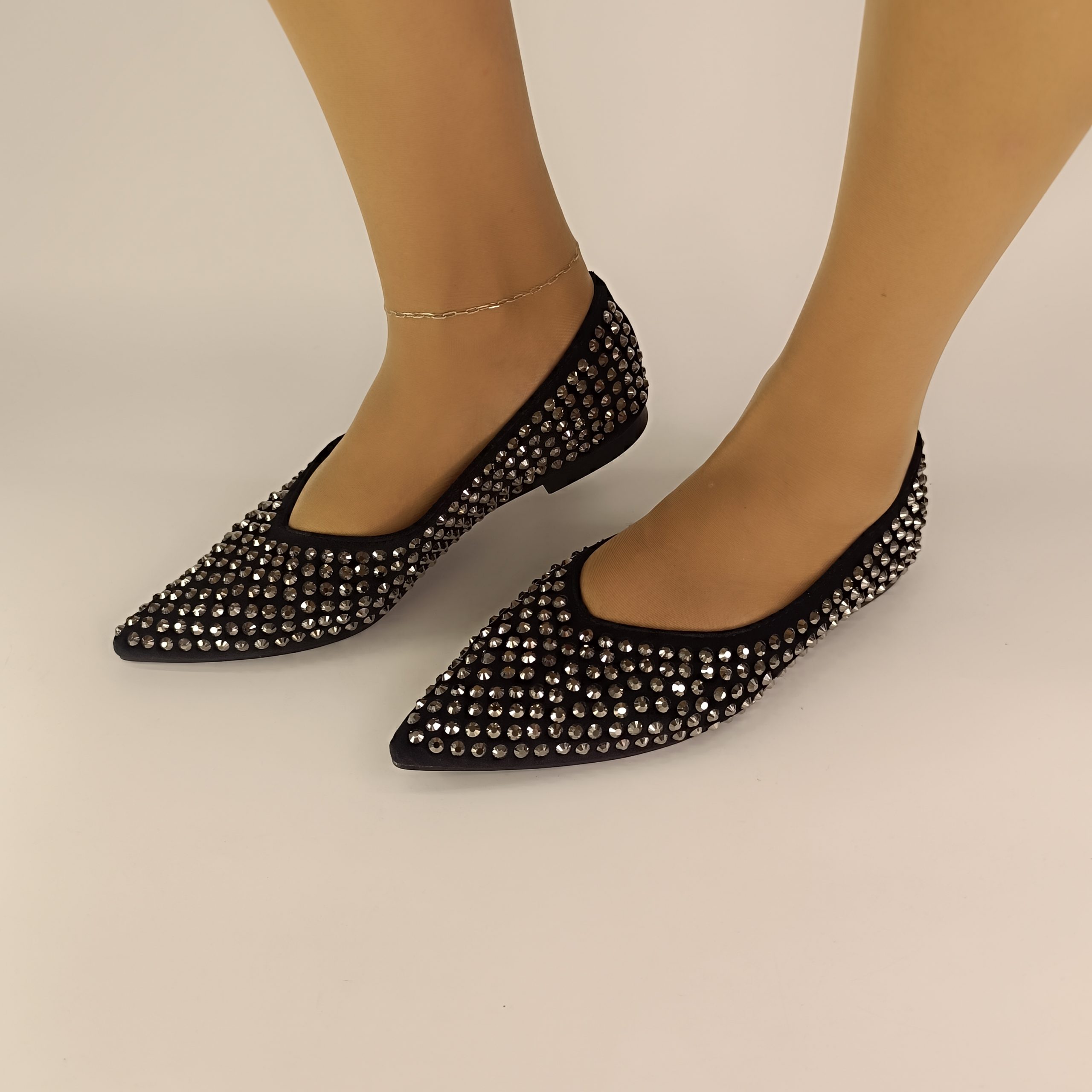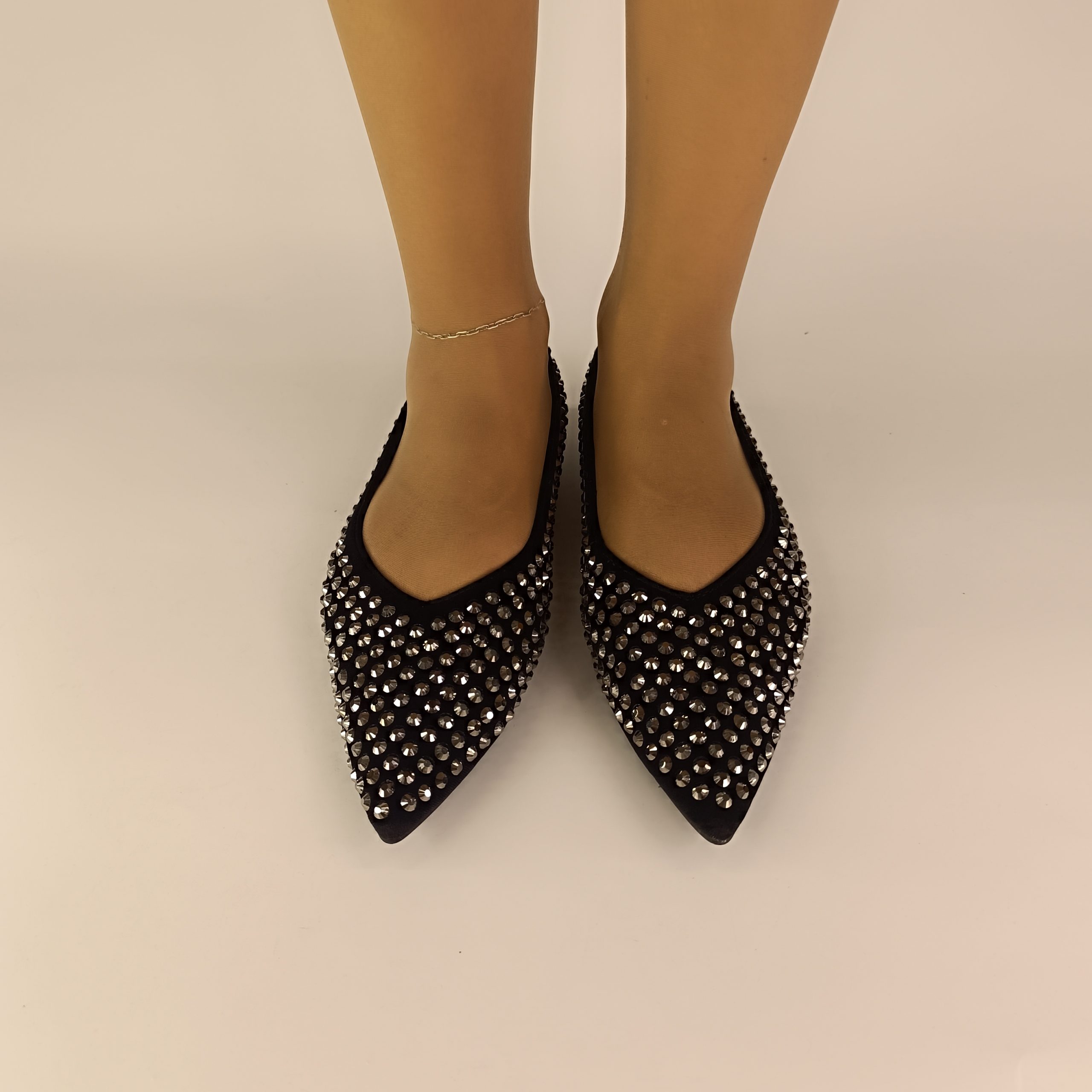126 Γόβες Μυτερές με στράς σε μαύρο χρώμα