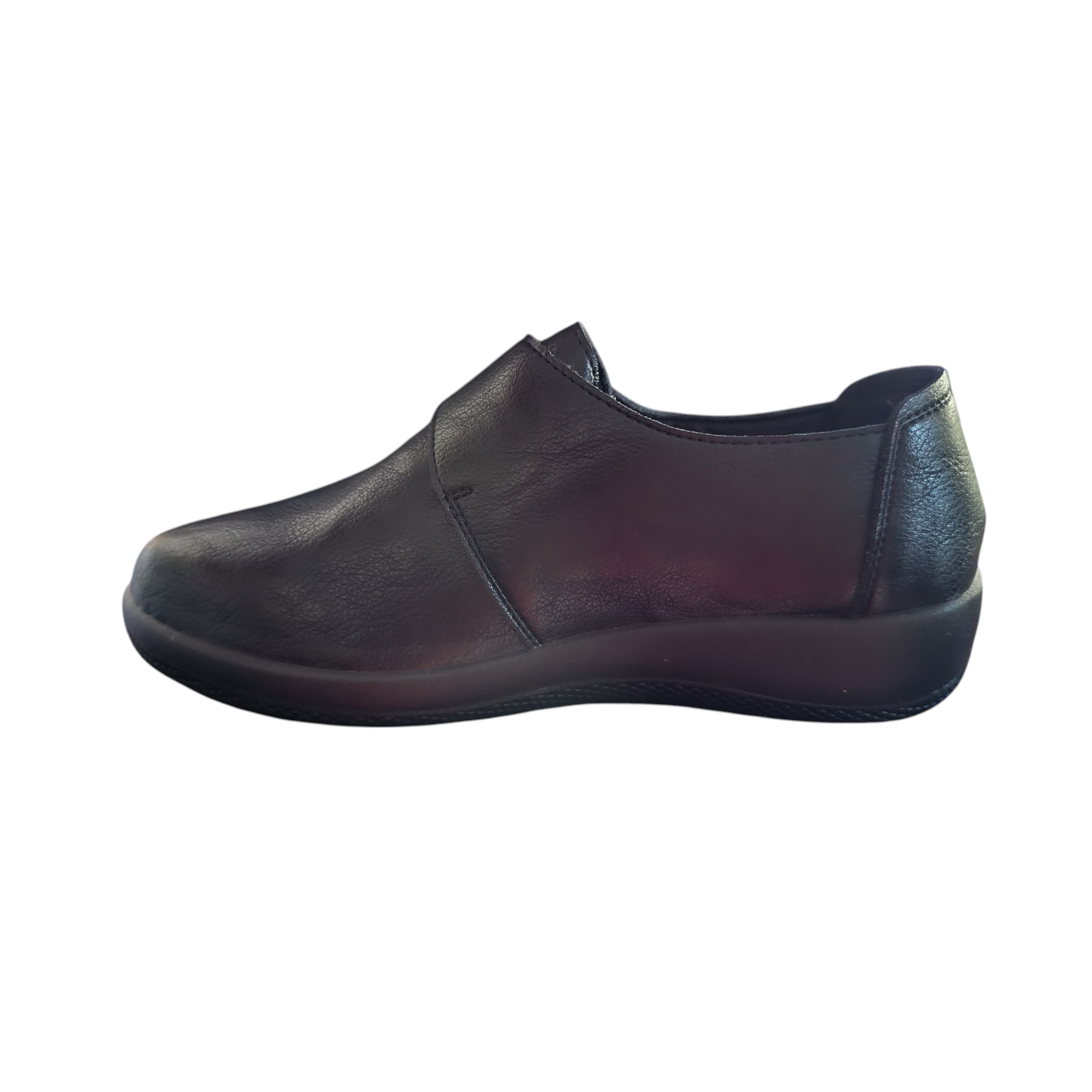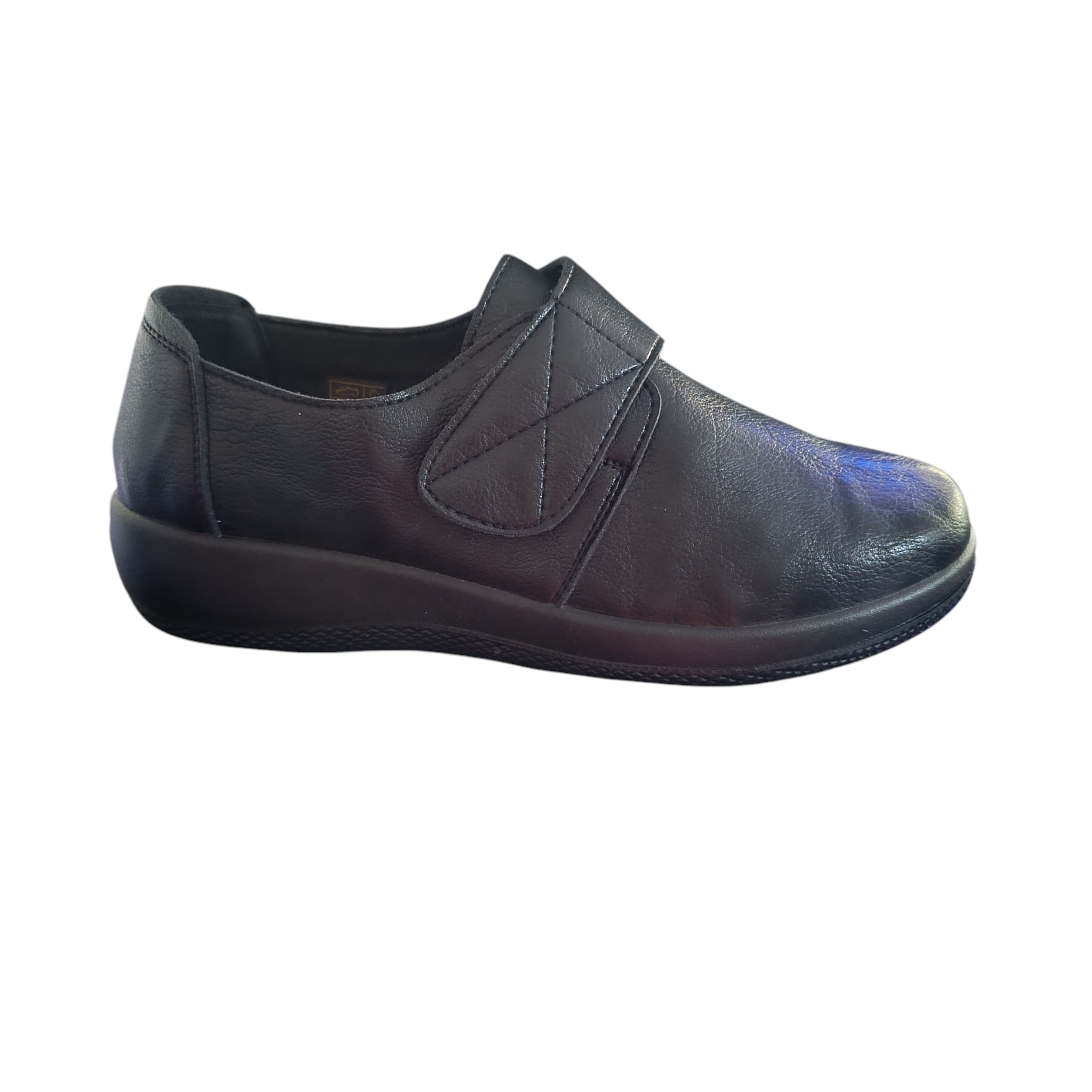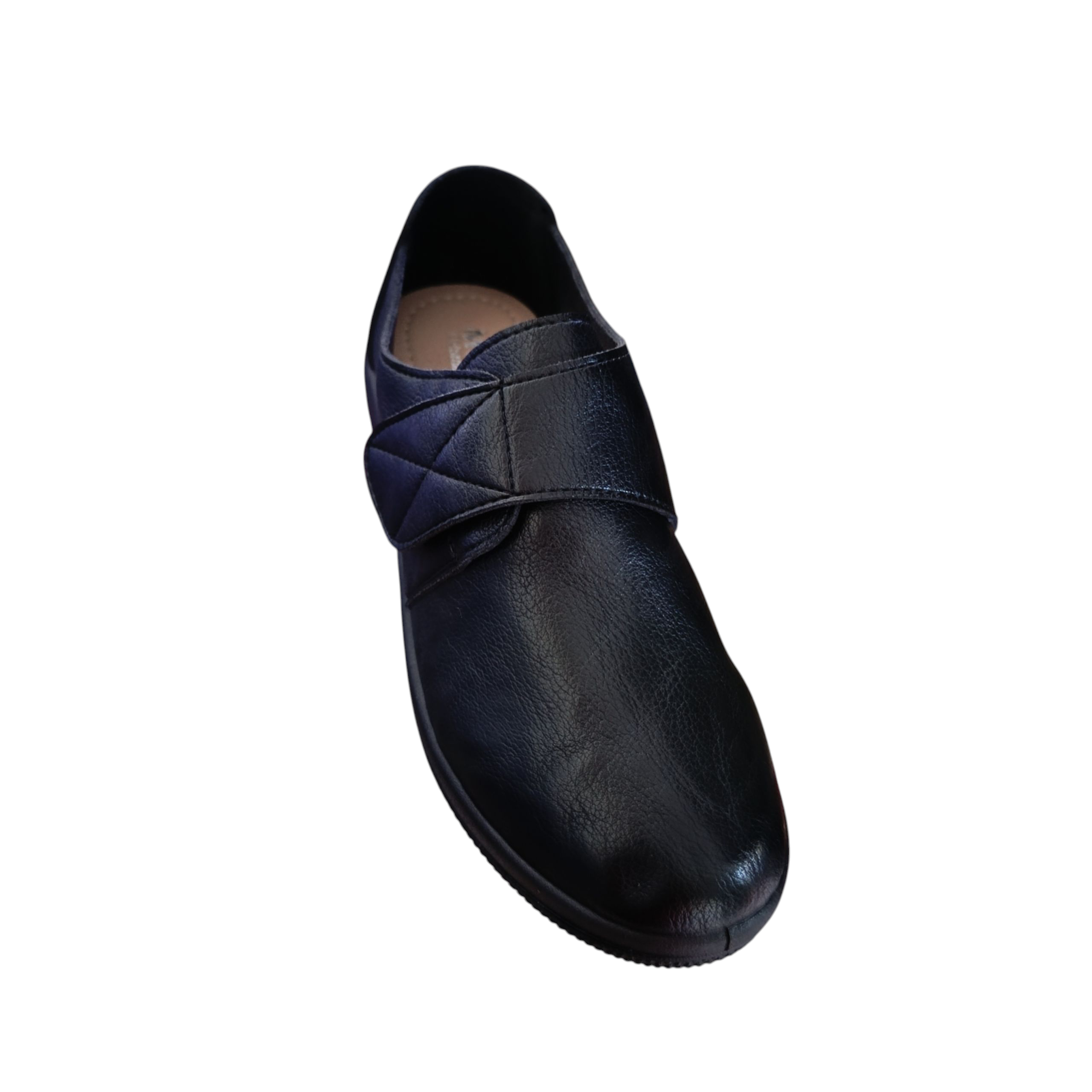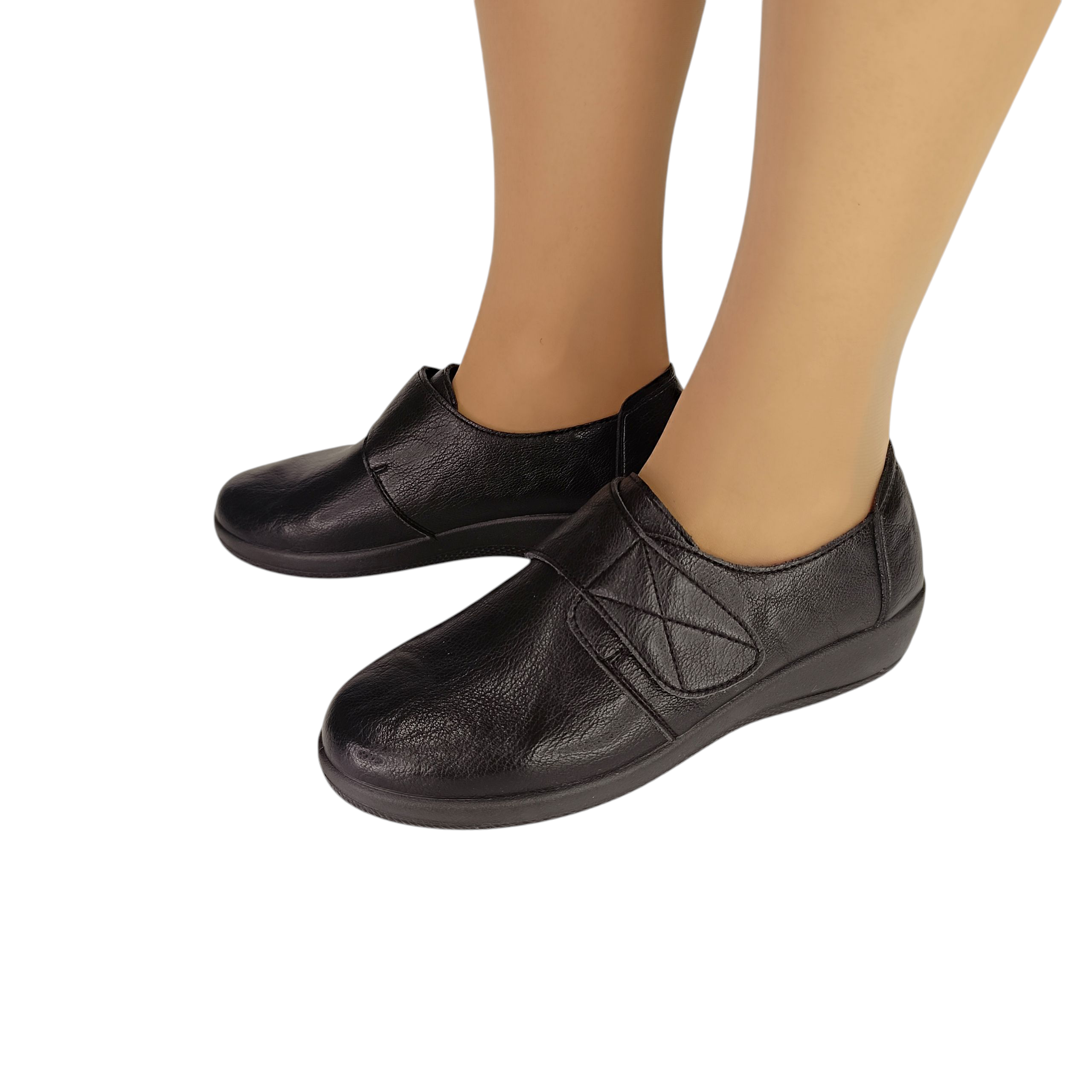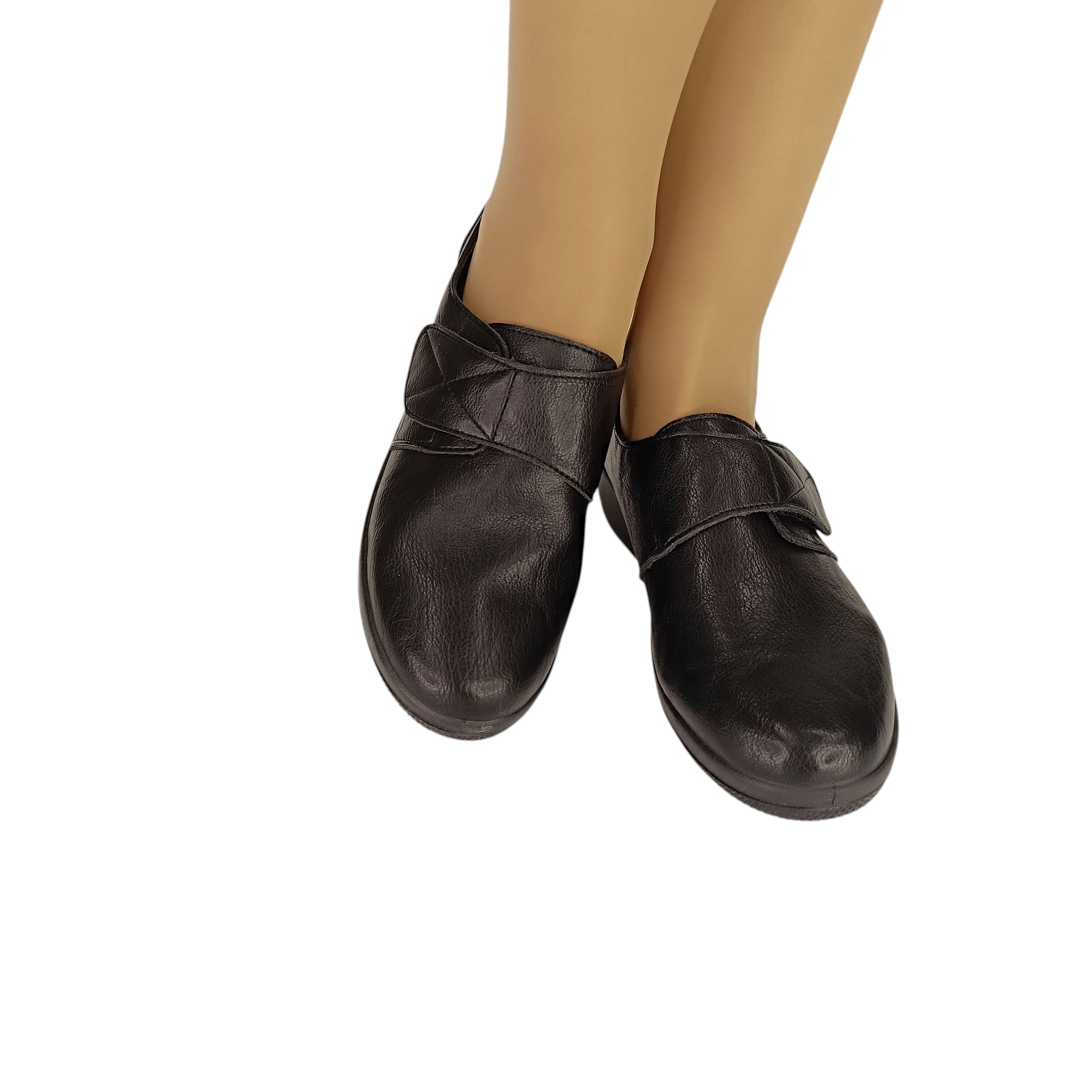 Mαύρο ανατομικό παπούτσι, ιδανικό για άτομα που αντιμετωπίζουν προβλήματα όπως κότσι . Είναι κατασκευασμένο από μαλακή δερματίνη προσφέροντας άνεση και ευελιξία.