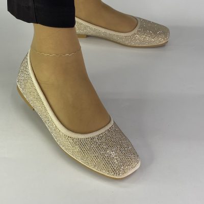6277 Μπαλαρίνες με πλεκτό διάτρητο σχέδιο σε χρυσό