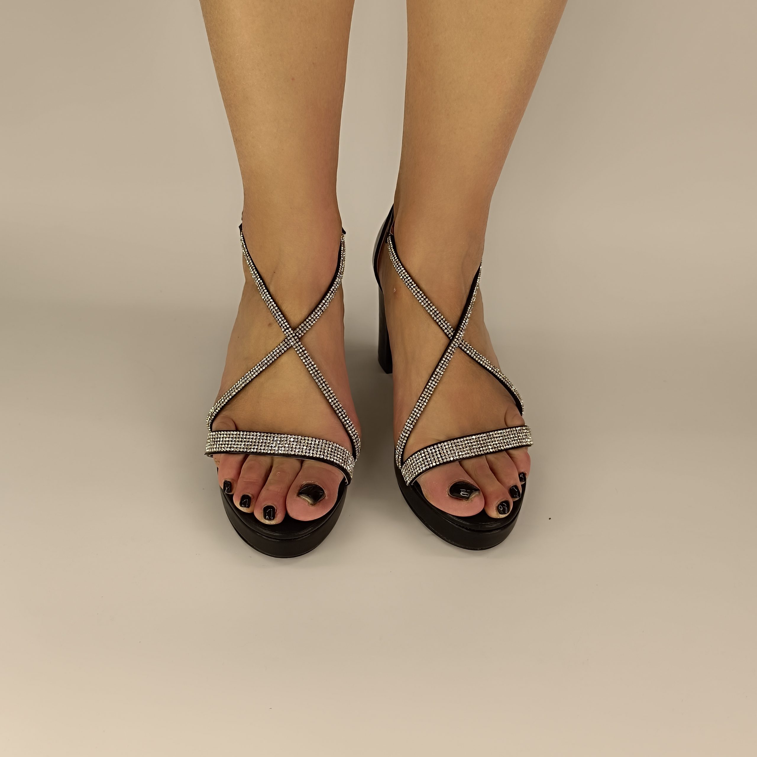 793-9 ψηλά χοντρά τακούνια με φιάπα και strass