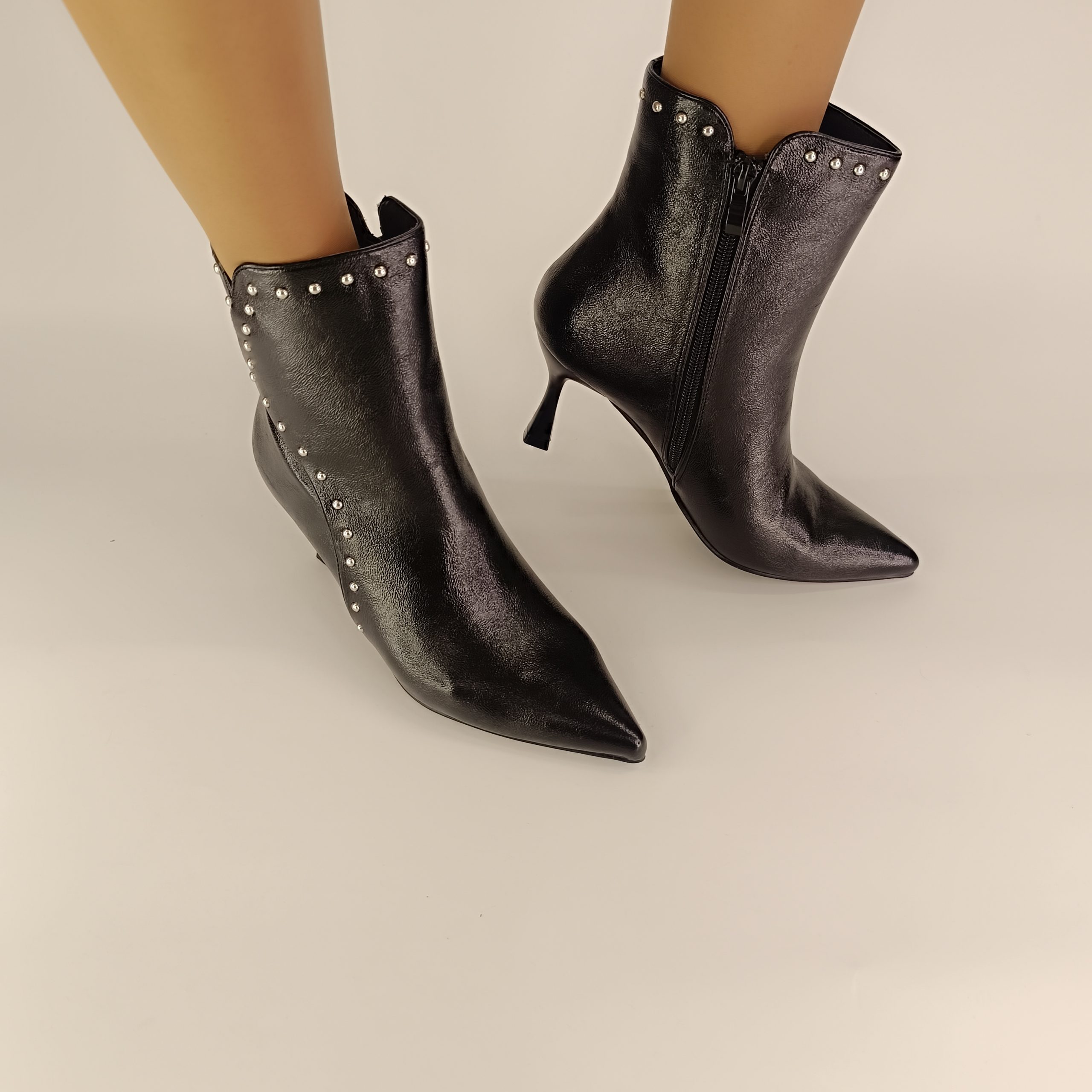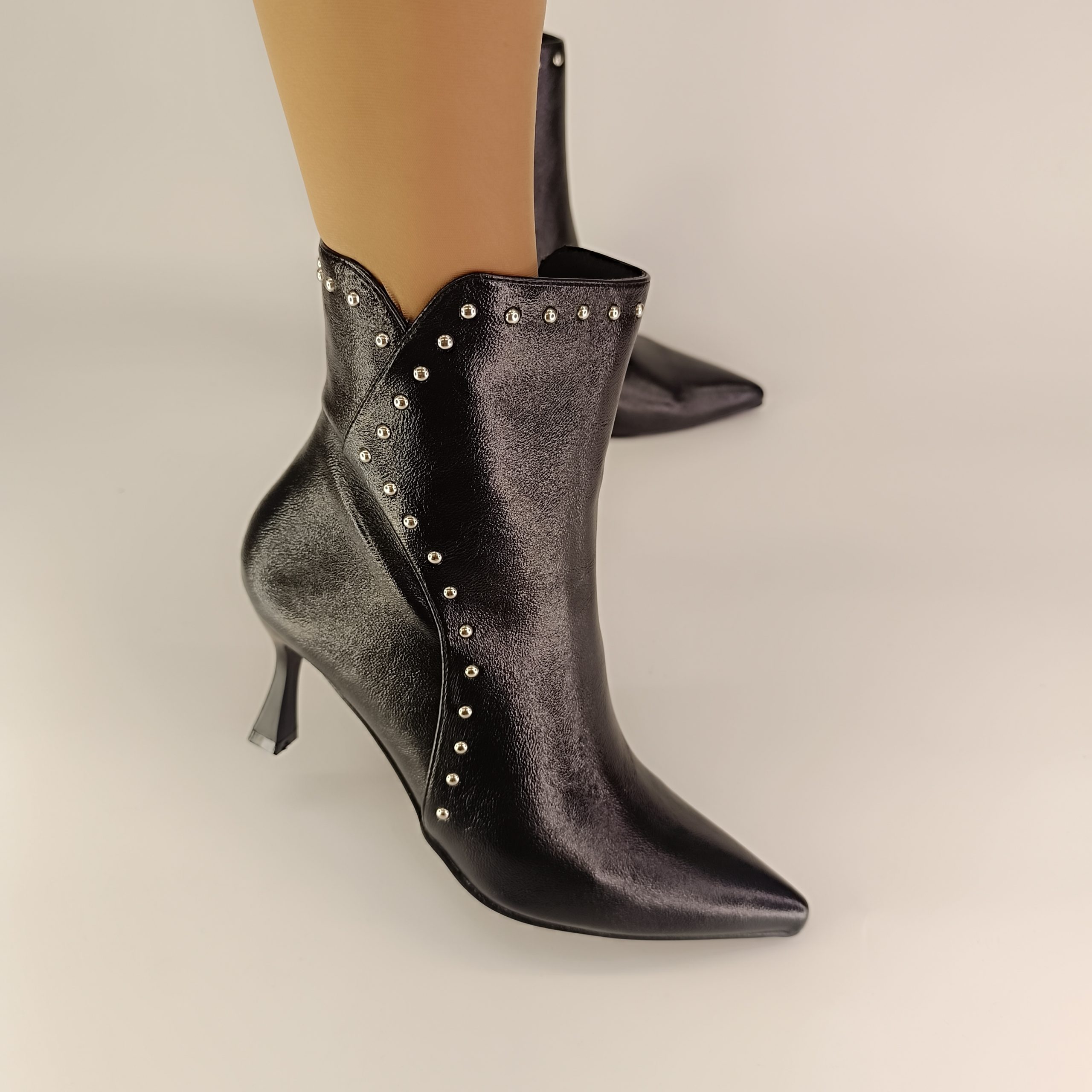 Αναβαθμίστε το στυλ σας με αυτά τα μοδάτα μυτερά μποτάκια με τρούκς.  Ιδανικά για κάθε γυναίκα που θέλει να ξεχωρίζει, προσδίδουν φινέτσα και λάμψη σε κάθε εμφάνιση. Άνετα και κομψά, είναι το τέλειο αξεσουάρ για να κλέψετε τις εντυπώσεις