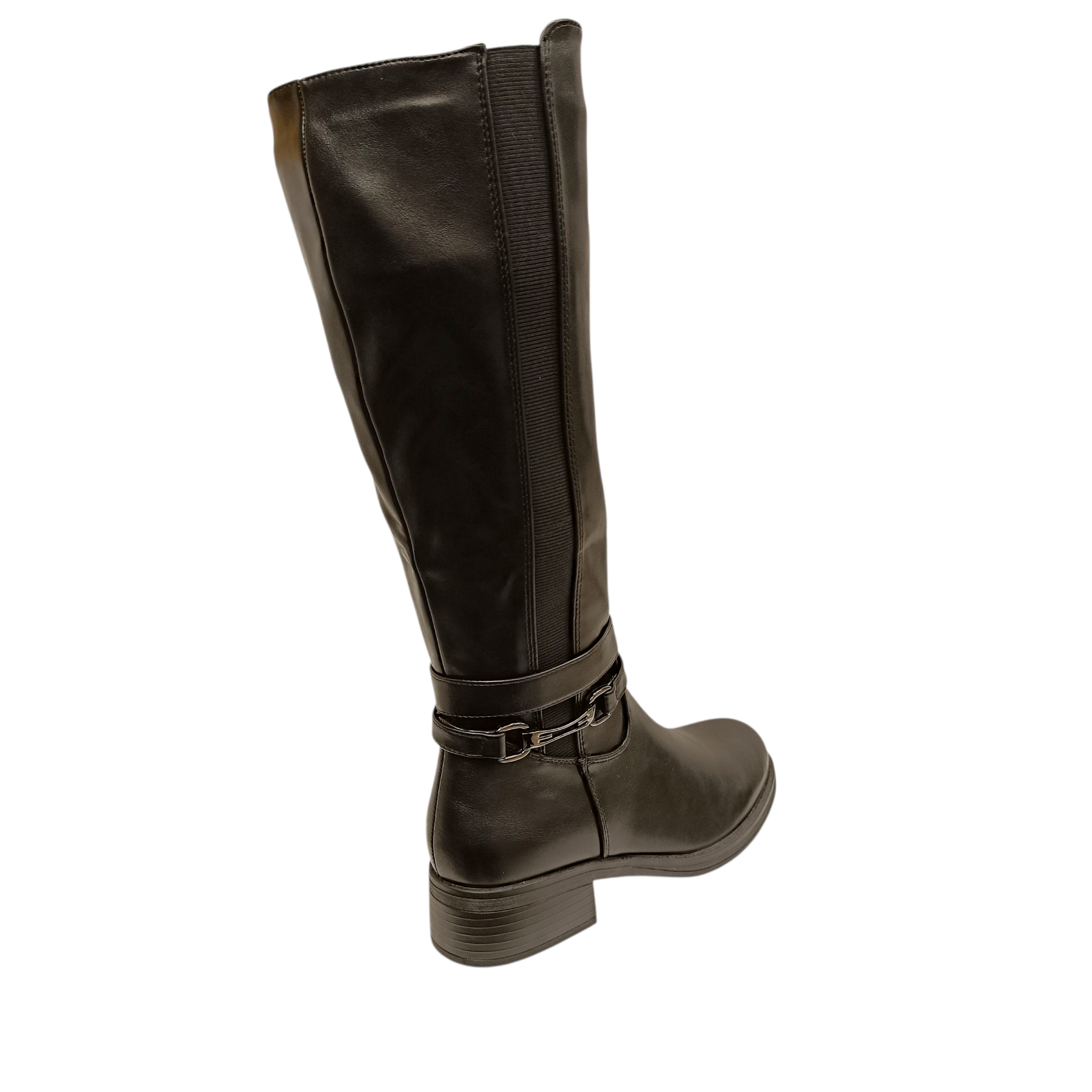 B033 Μπότες με Λάστιχο & Διακοσμητικό Λουράκι σε μαύρο χρώμα