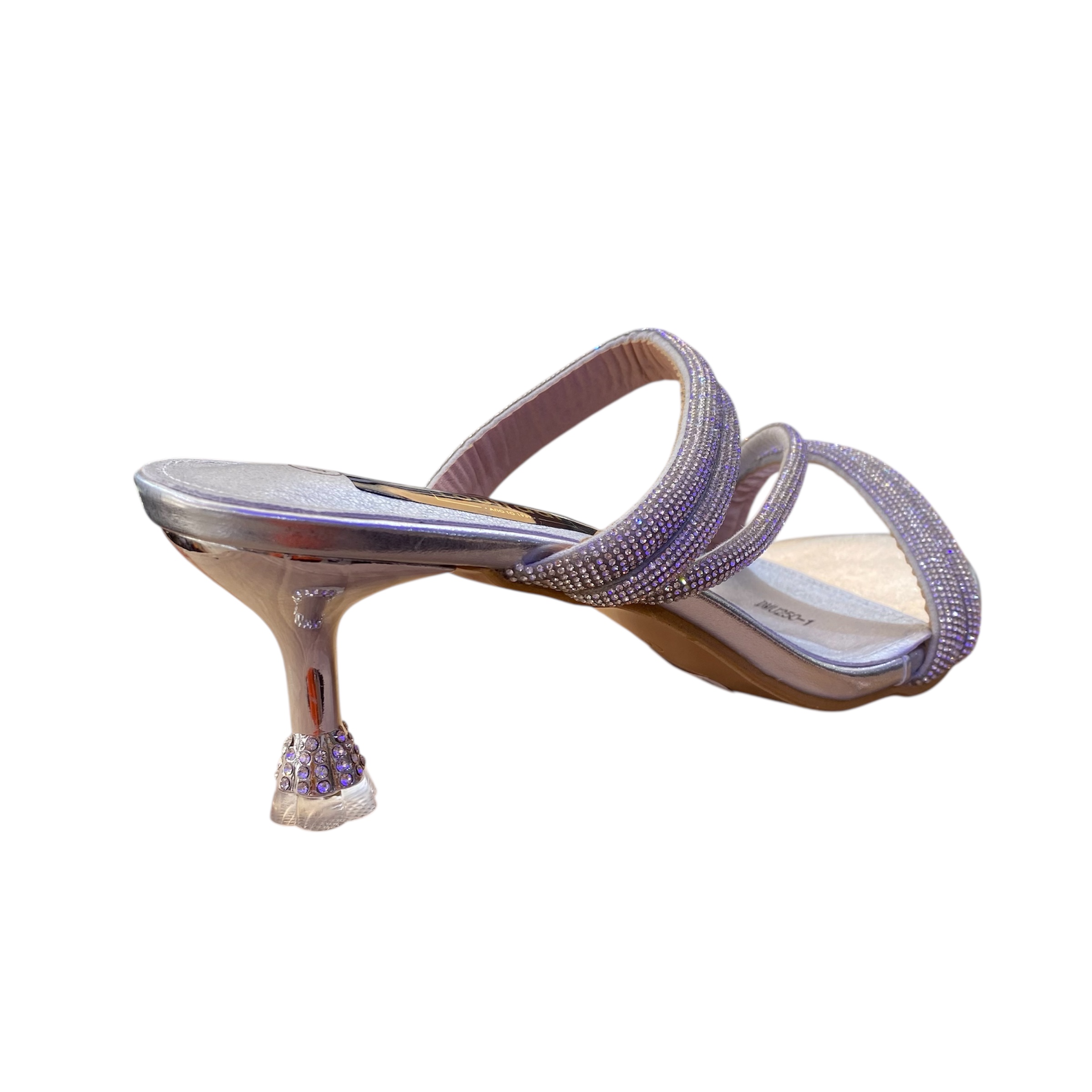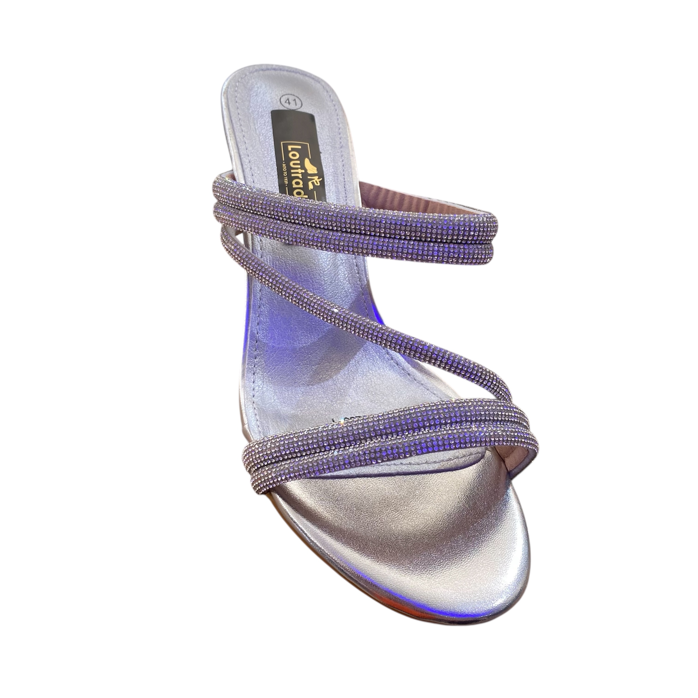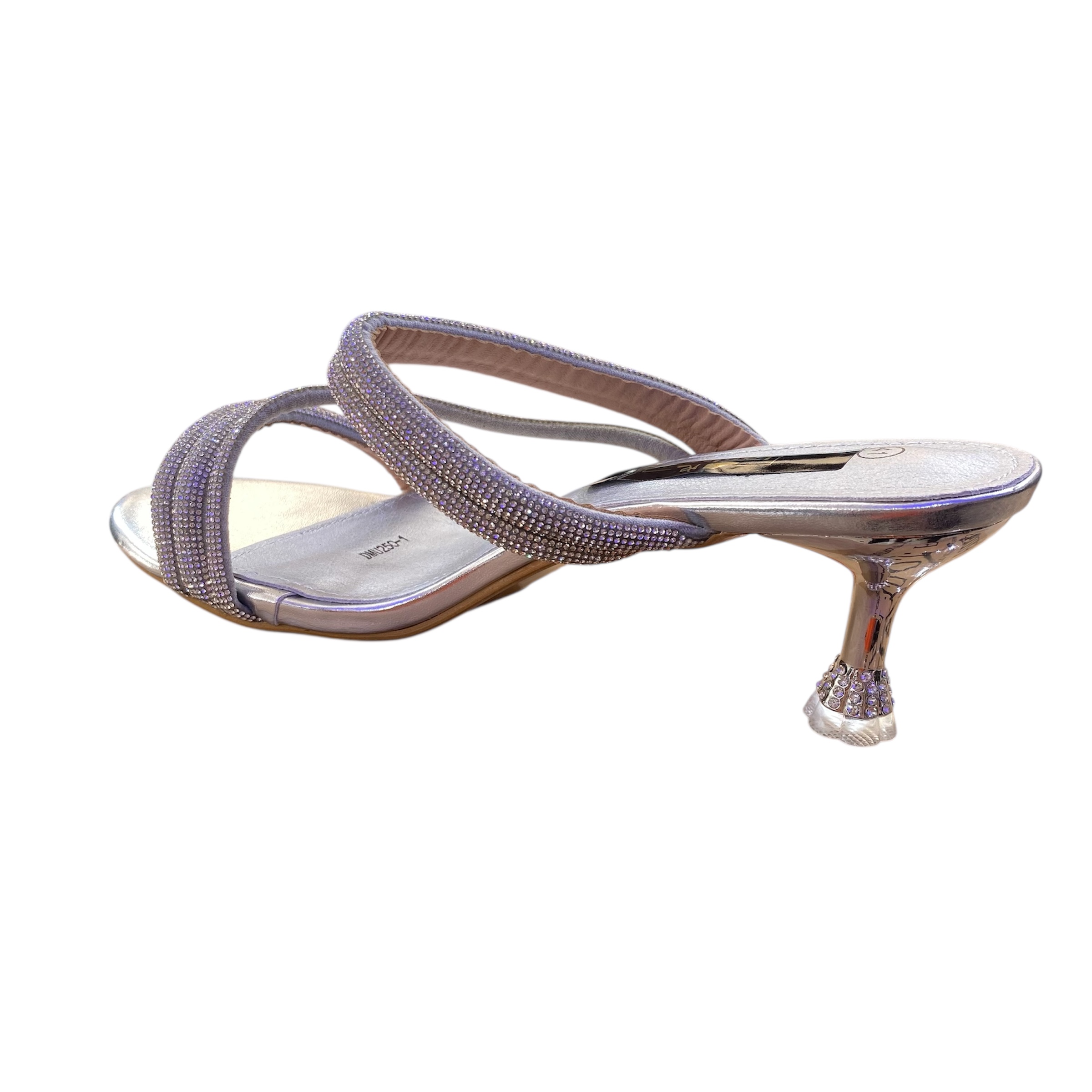 DMU250-1 Γυναικεία παντόφλα με τακουνάκι σε ασημί χρώμα